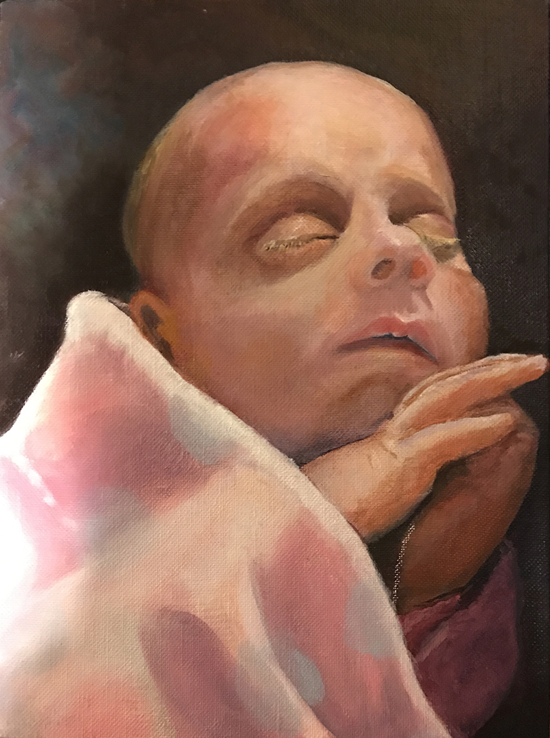 As you can see the painting has developed significantly over the past few months. I’ve delayed signing the final version because I’m not quite ready to let go. I want to tweak the nose a bit more and I’ll probably mess with the left fist covered mostly be the right hand. As Karl says, you need to people to paint one to do the work and one to tell you when to stop.